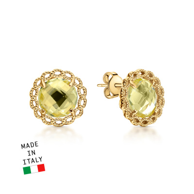 Роскошь, которая поражает воображение. Серьги из жёлтого золота 585 пробы со вставками из лимонного кварца выполнены лучшими итальянскими ювелирами. Стильный дизайн не оставит ни одну покупательницу равнодушной. Италия славится своим высоким ювелирным искусством. В коллекции Золото Италии Вы найдете необычные, стильные, шикарные украшения выполненные в современных технологиях.