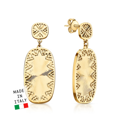 Роскошь, которая поражает воображение. Серьги из жёлтого золота 585 пробы выполнены лучшими итальянскими ювелирами. Стильный дизайн не оставит ни одну покупательницу равнодушной. Италия славится своим высоким ювелирным искусством. В коллекции Золото Италии Вы найдете необычные, стильные, шикарные украшения выполненные в современных технологиях.