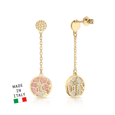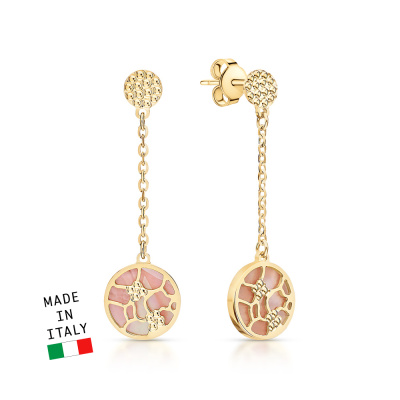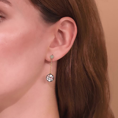 Элегантные двухсторонние украшения выполненные в итальянской технологии со вставками из натурального мозаичного перламутра прекрасно подойдут для создания как элегантного вечернего образа, так и для повседневной носки. Украшение из золота 585 пробы лимонного оттенка, так популярного в Европе. SUNLIGHT - будьте в тренде!