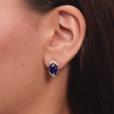 Золотые серьги с бриллиантами природными и сапфирами выращенными