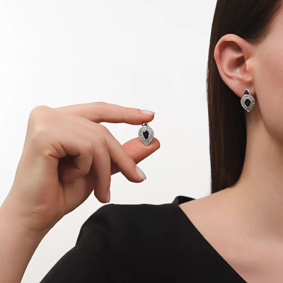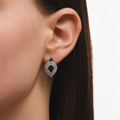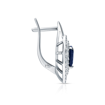 Серьги с 44 бриллиантами природными, 0.65 карат, огранка круг 17 граней, цвет 2, чистота 2, тип огранки А; 36 бриллиантами природными, 0.25 карат, огранка круг 17 граней, цвет 2, чистота 2, тип огранки А; 2 сапфирами природными, 1.6 карат, цвет 2, чистота 2, тип огранки Б; Белое золото 585 пробы.