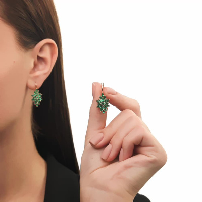 Серьги с 36 гидротермальными изумрудами, 2.32 карат; 2 гидротермальными изумрудами, 0.12 карат; Розовое золото 585 пробы.