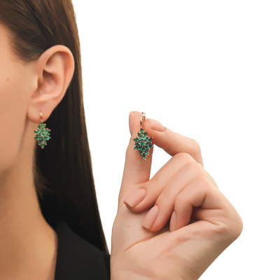 Золотые серьги с изумрудами выращенными