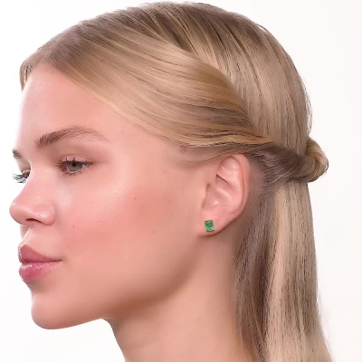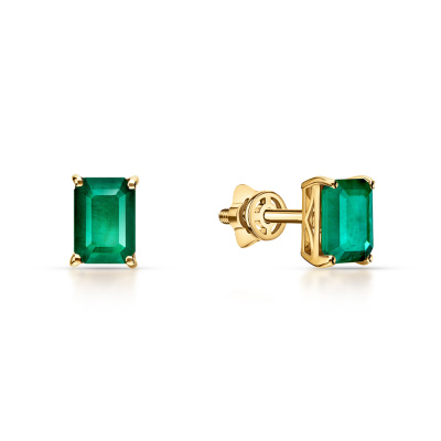 Серьги с 2 изумрудами природными, 1.82 карат, цвет 3, чистота 3; Желтое золото 585 пробы.