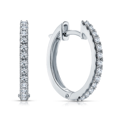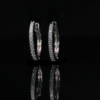 Серьги с 26 бриллиантами природными, 0.24 карат, огранка круг 57 граней, цвет 3, чистота 6, тип огранки А; Белое золото 585 пробы.