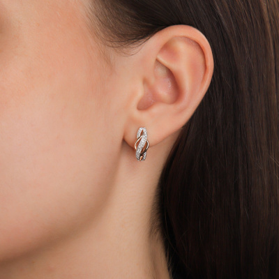 Серьги с 66 бриллиантами природными, 0.14 карат, огранка круг 17 граней, цвет 2, чистота 2, тип огранки А; Розовое золото 585 пробы.