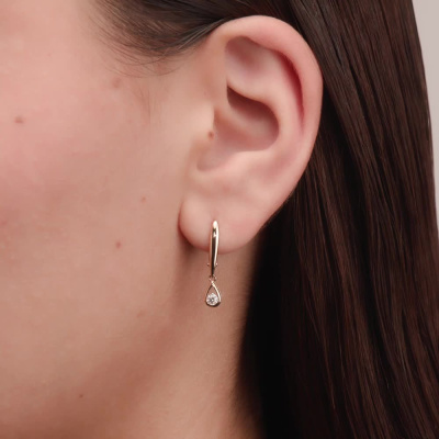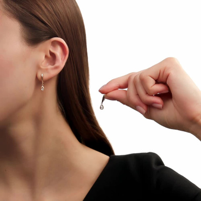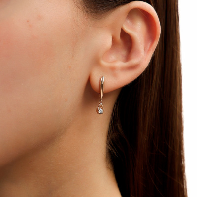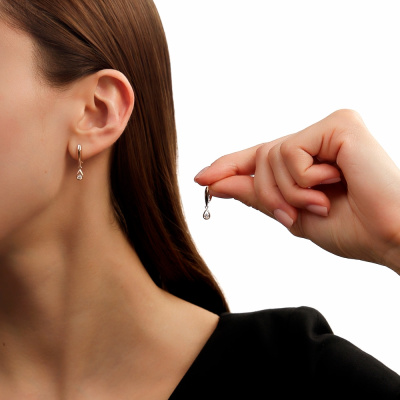 Серьги с 2 бриллиантами природными, 0.15 карат, огранка круг 57 граней, цвет 3, чистота 6, тип огранки А; Розовое золото 585 пробы.