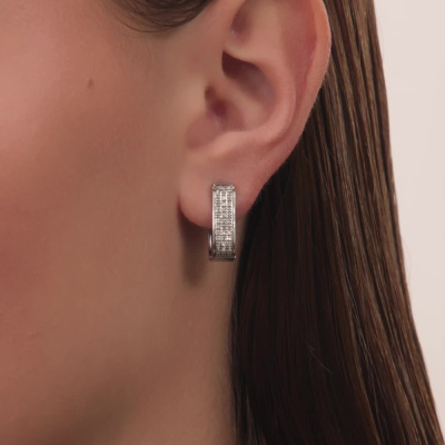 Серьги с 78 бриллиантами природными, 0.27 карат, огранка круг 17 граней, цвет 2, чистота 2, тип огранки А; Белое золото 585 пробы.