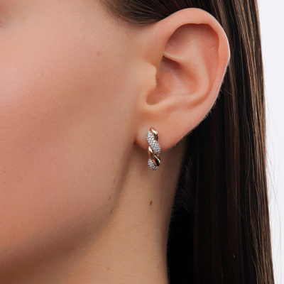 Серьги с 140 бриллиантами природными, 0.34 карат, огранка круг 17 граней, цвет 2, чистота 2, тип огранки А; Розовое золото 585 пробы.