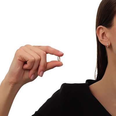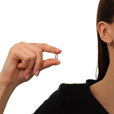 Серьги с 18 бриллиантами природными, 0.05 карат, огранка круг 17 граней, цвет 2, чистота 2, тип огранки А; Розовое золото 585 пробы.