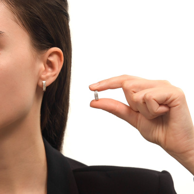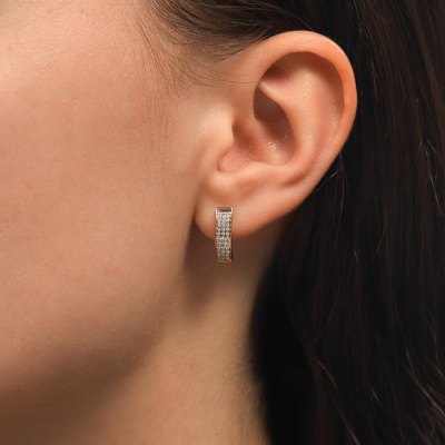 Серьги с 66 бриллиантами природными, 0.17 карат, огранка круг 17 граней, цвет 2, чистота 2, тип огранки А; Розовое золото 585 пробы.