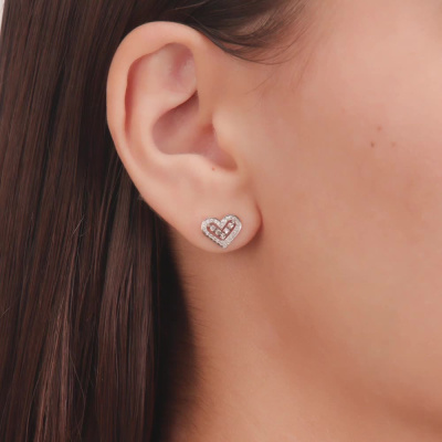 Серьги с 44 бриллиантами природными, 0.07 карат, огранка круг 17 граней, цвет 2, чистота 2, тип огранки А; 10 бриллиантами коньячными природными, 0.13 карат, огранка круг 57 граней, цвет 7, чистота 5, тип огранки А; Розовое золото 585 пробы.