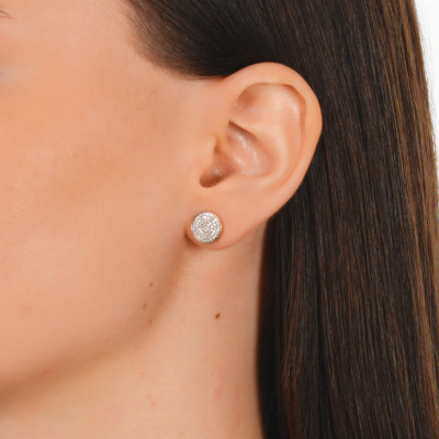 Серьги с 122 бриллиантами природными, 0.32 карат, огранка круг 17 граней, цвет 2, чистота 2, тип огранки А; Розовое золото 585 пробы.