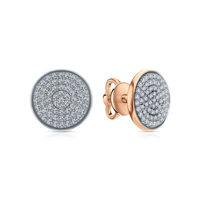 Серьги с 122 бриллиантами природными, 0.34 карат, огранка круг 17 граней, цвет 2, чистота 2, тип огранки А; Розовое золото 585 пробы.