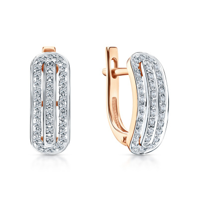 Серьги с 70 бриллиантами природными, 0.29 карат, огранка круг 17 граней, цвет 2, чистота 2, тип огранки А; Розовое золото 585 пробы.