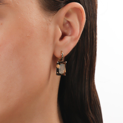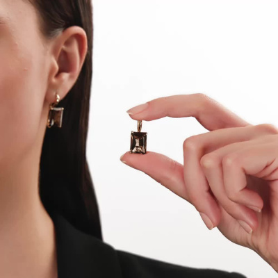 Золотые серьги с кварцами дымчатыми природными
