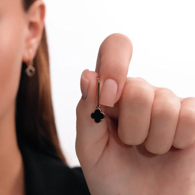 Серьги, вставка: эмаль черная; Розовое золото 585 пробы.