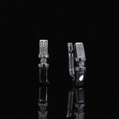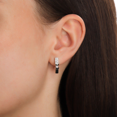 Серьги с 2 бриллиантами природными, 0.1 карат, огранка круг 57 граней, цвет 3, чистота 5, тип огранки А; 16 бриллиантами природными, 0.05 карат, огранка круг 17 граней, цвет 2, чистота 3, тип огранки Б; Белое золото 585 пробы.