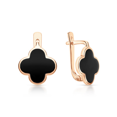 Серьги, вставка: эмаль черная; Розовое золото 585 пробы.