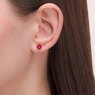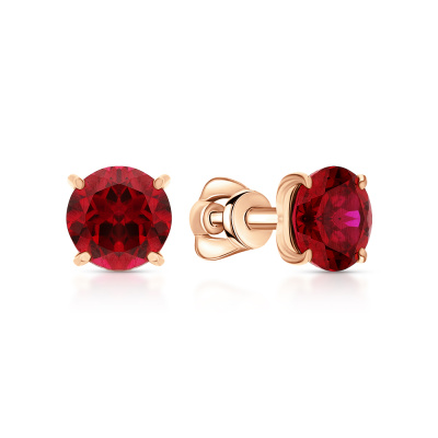 Серьги с 2 рубинами синтетическими, 2.04 карат; Розовое золото 585 пробы.