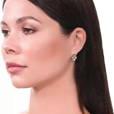 Серьги с 8 бриллиантами природными, 0.05 карат, огранка круг 17 граней, цвет 2, чистота 4, тип огранки Б; Серебро 925 пробы.