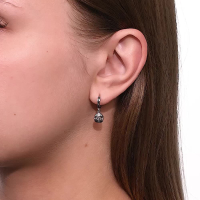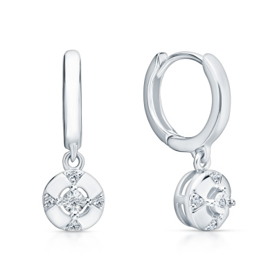 Серьги с 10 бриллиантами природными, 0.05 карат, огранка круг 17 граней, цвет 2, чистота 4; Серебро 925 пробы.