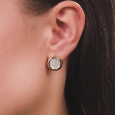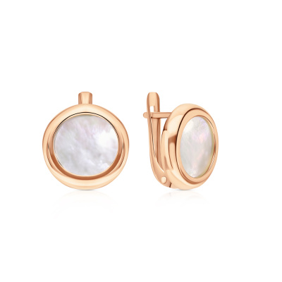 Серьги с 2 перламутрами белыми природными; Розовое золото 585 пробы.