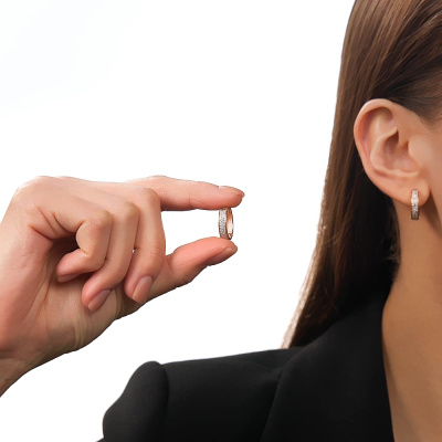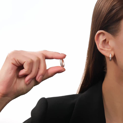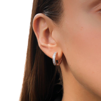 Серьги с 120 бриллиантами природными, 0.32 карат, огранка круг 17 граней, цвет 2, чистота 2, тип огранки А; Розовое золото 585 пробы.