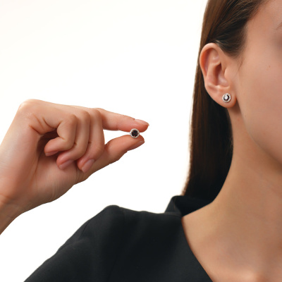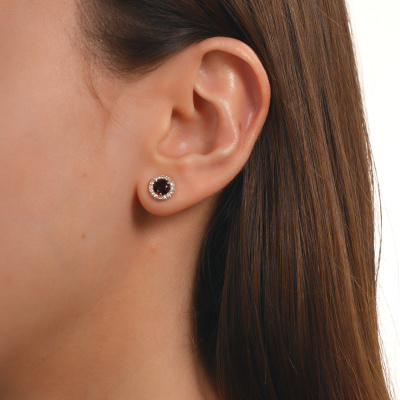 Серьги с 34 бриллиантами природными, 0.15 карат, огранка круг 17 граней, цвет 2, чистота 2, тип огранки А; 2 гранатами природными, 1.18 карат; Розовое золото 585 пробы.