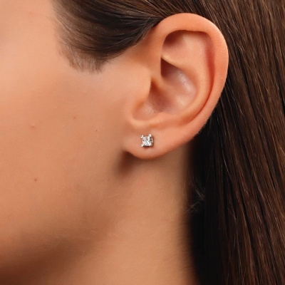 Серьги с 2 бриллиантами природными, 0.46 карат, огранка принцесса 65 граней, цвет 3, чистота 6, тип огранки А; Платина 950 пробы.