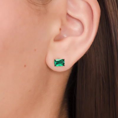 Серьги с 2 гидротермальными изумрудами, 1.51 карат; Белое золото 585 пробы.