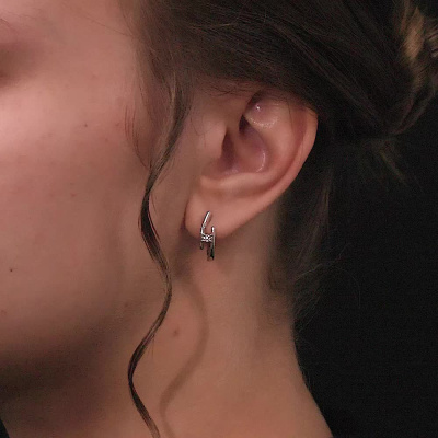 Серьги с 2 бриллиантами природными, 0.01 карат, огранка круг 17 граней, цвет 2, чистота 2, тип огранки А; Серебро 925 пробы.