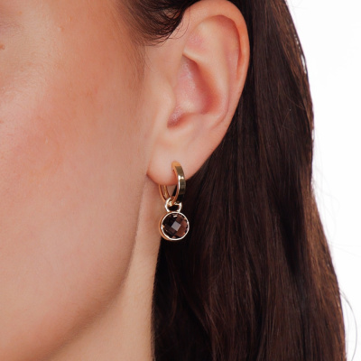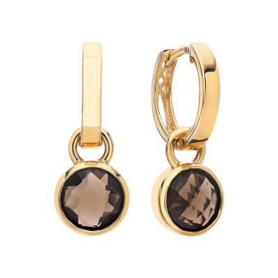 Золотые серьги с кварцем дымчатым природным