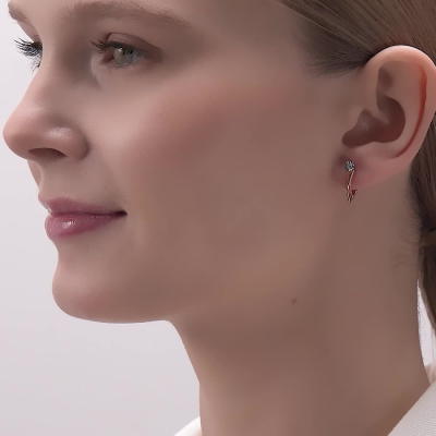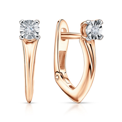 Серьги с 2 бриллиантами природными, 0.04 карат, огранка круг 57 граней, цвет 3, чистота 6, тип огранки А; Розовое и белое золото 585 пробы.