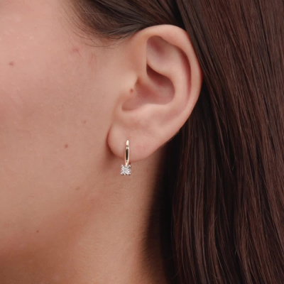 Серьги с 2 бриллиантами природными, 0.05 карат, огранка круг 57 граней, цвет 4, чистота 6, тип огранки А; Розовое и белое золото 585 пробы.
