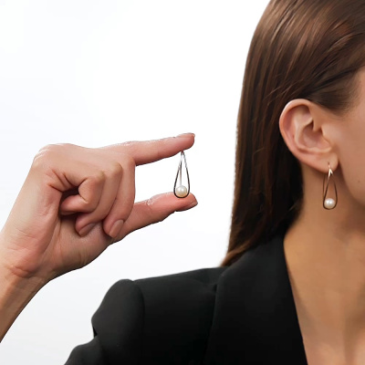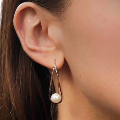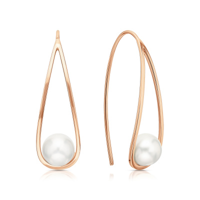 Серьги с 2 жемчугами пресноводными культ.белыми, 6.03 карат; Розовое золото 585 пробы.