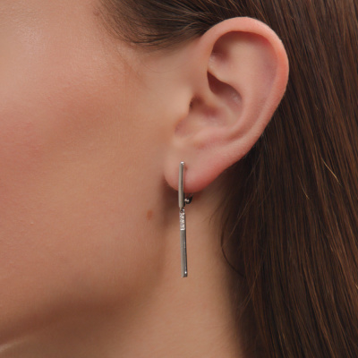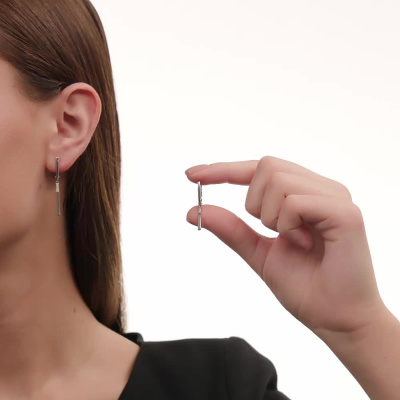 Серьги с 6 бриллиантами природными, 0.04 карат, огранка круг 17 граней, цвет 3, чистота 3, тип огранки Б; Серебро 925 пробы.