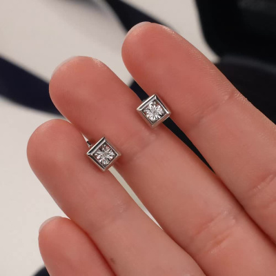 Серьги с 2 бриллиантами природными, 0.005 карат, огранка круг 17 граней, цвет 3, чистота 3, тип огранки Б; Серебро 925 пробы.