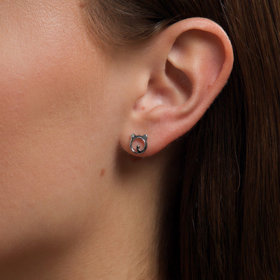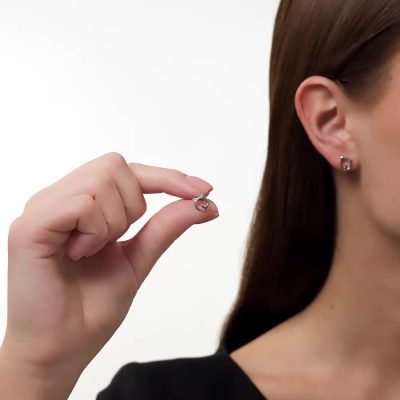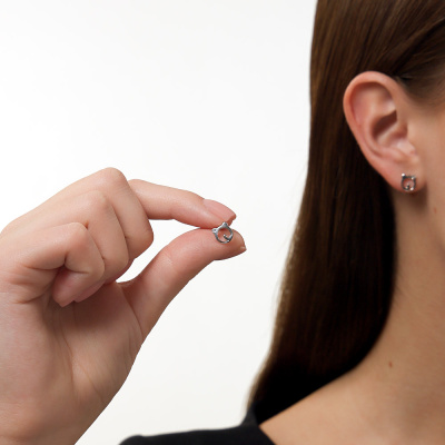 Серьги с 2 бриллиантами природными, 0.01 карат, огранка круг 17 граней, цвет 3, чистота 3, тип огранки Б; Серебро 925 пробы.