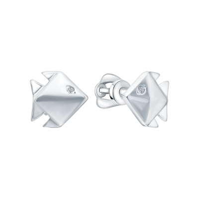 Серьги с 2 бриллиантами природными, 0.01 карат, огранка круг 17 граней, цвет 3, чистота 3, тип огранки Б; Серебро 925 пробы.