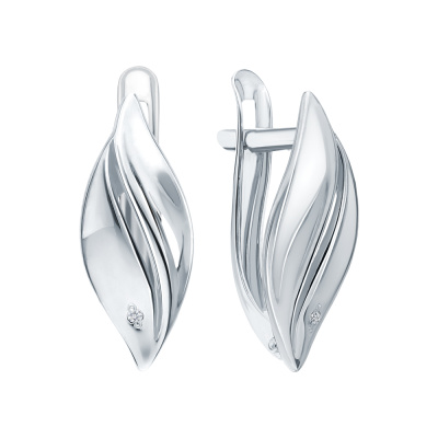 Серьги с 2 бриллиантами природными, 0.007 карат, огранка круг 17 граней, цвет 3, чистота 3, тип огранки Б; Серебро 925 пробы.