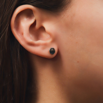 Серьги с 2 бриллиантами природными, 0.01 карат, огранка круг 17 граней, цвет 3, чистота 3, тип огранки Б; Серебро 925 пробы.