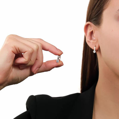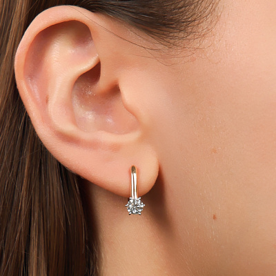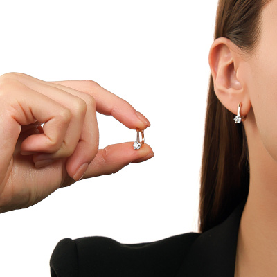 Серьги с 2 бриллиантами природными, 0.81 карат, огранка круг 57 граней, цвет 4, чистота 7, тип огранки А; Розовое золото 585 пробы.