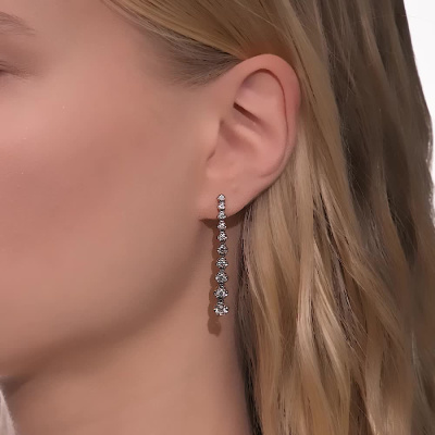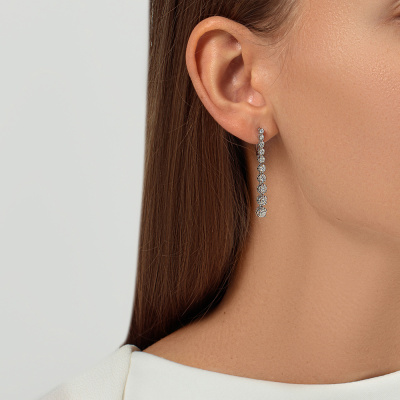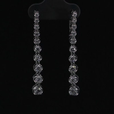 Серьги с 2 бриллиантами природными, 0.36 карат, огранка круг 57 граней, цвет 3, чистота 6, тип огранки А; 4 бриллиантами природными, 0.44 карат, огранка круг 57 граней, цвет 3, чистота 6, тип огранки А; 4 бриллиантами природными, 0.26 карат, огранка круг 57 граней, цвет 3, чистота 6, тип огранки А; 6 бриллиантами природными, 0.2 карат, огранка круг 57 граней, цвет 3, чистота 6, тип огранки А; 4 бриллиантами природными, 0.09 карат, огранка круг 57 граней, цвет 3, чистота 6, тип огранки А; Белое золото 585 пробы.