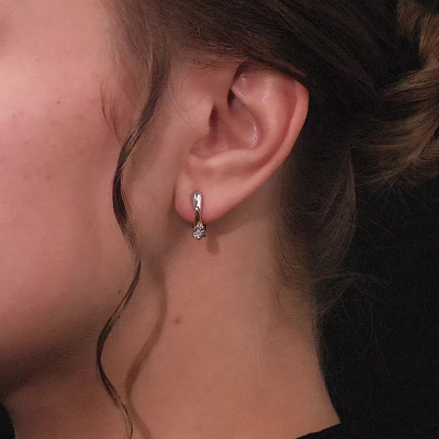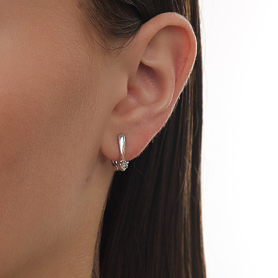 Серьги с 2 бриллиантами природными, 0.009 карат, огранка круг 17 граней, цвет 2, чистота 3, тип огранки Б; элементы из золота Au585, 0.009 карат; Серебро 925 пробы.