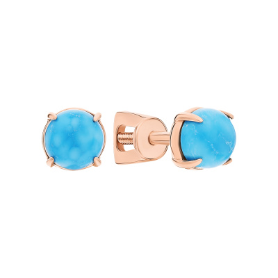 Серьги с 2 имитациями бирюзы; Розовое золото 585 пробы.