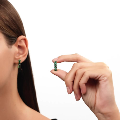 Серьги с 12 гидротермальными изумрудами, 2.18 карат; Розовое золото 585 пробы.