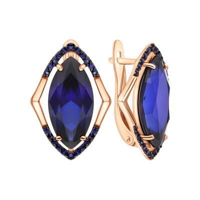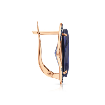 Серьги с 2 сапфирами синтетическими, 9.41 карат; 44 сапфирами синтетическими, 0.26 карат; Розовое золото 585 пробы.