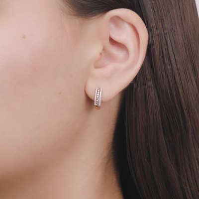 Серьги с 48 бриллиантами природными, 0.09 карат, огранка круг 17 граней, цвет 2, чистота 2, тип огранки А; 18 бриллиантами коньячными природными, 0.15 карат, огранка круг 57 граней, цвет 7, чистота 5, тип огранки А; Розовое золото 585 пробы.
