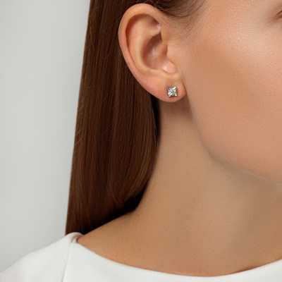 Серьги с 2 бриллиантами природными, 0.5 карат, огранка круг 57 граней, цвет 4, чистота 7, тип огранки А; Белое золото 585 пробы.